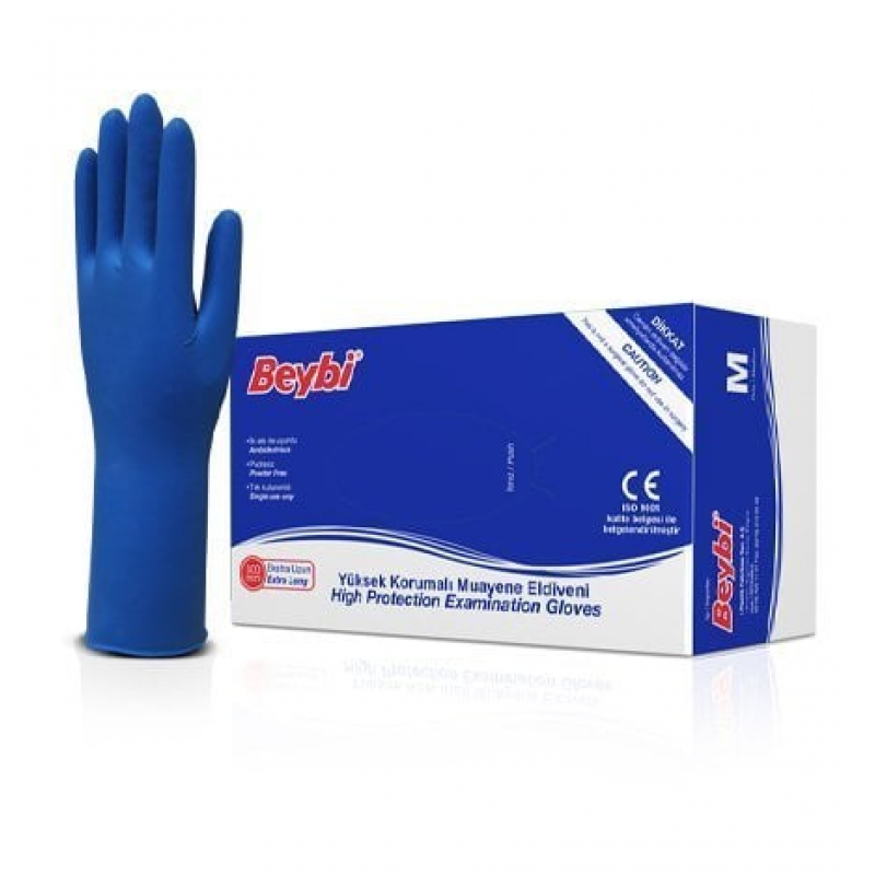 Etiketler: Beybi Lateks Yüksek Koruma Muayene Eldiveni (Pudrasız) Koyu Mavi M 50 Adet/Kutu